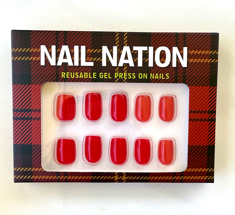 Bright red gloss finish with a medium-length, square shape - Press-On Nails
